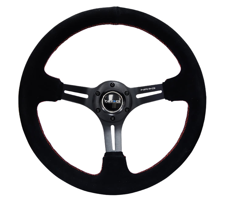 Our signature 75mm deep Steering Wheel, featuring a slit spoke design over the typical circular cut-outs, wrapped in Leather.